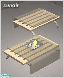 Sunair T051 Coffee Table (lightwood) of Batten Livingroom B - Mesh set. Tha altitude of this object has been hacked which is lower than usual coffee table. The glass and the other part can be arranged in pair if there were more than one recolor installed.