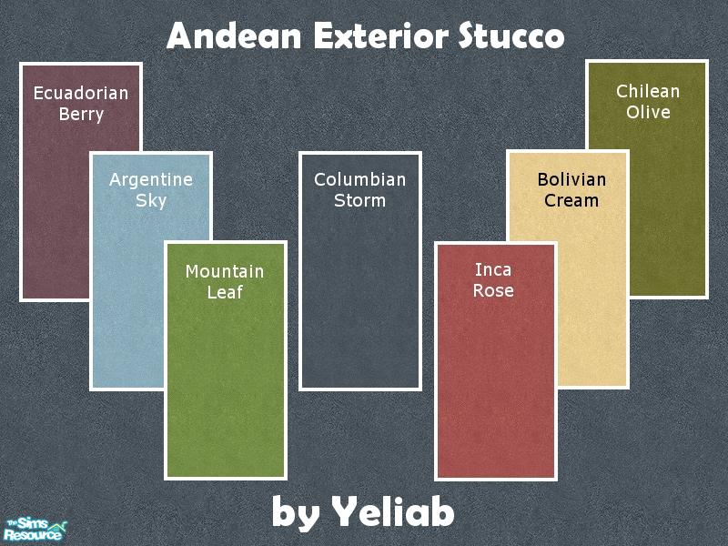 Seven Exterior Stucco Walls using colours drawn from my Andean Weave Carpet and Andean Mosaic Tile. Inspired by the cultures of the Andes. *TSRAA*