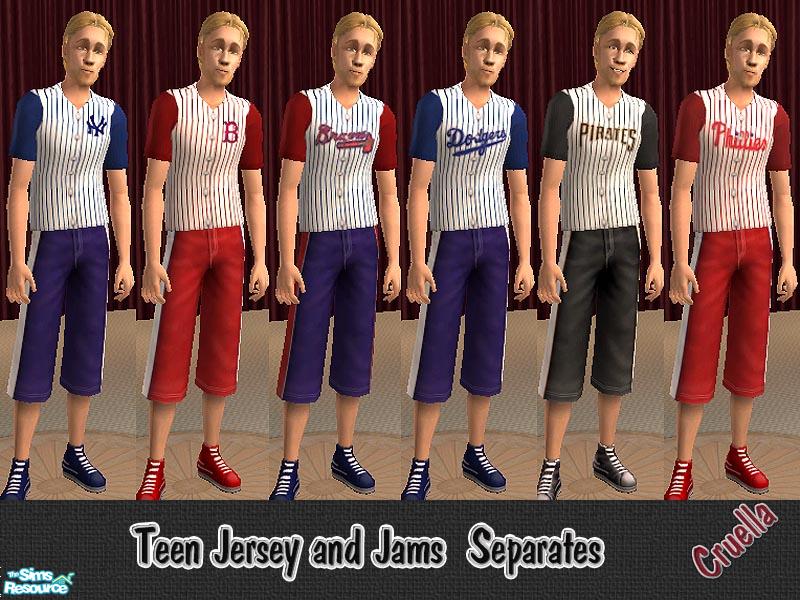 Six sports replica jersey's and 4 co-ordinating jammer shorts. For the sports lover in your Sims Teen.