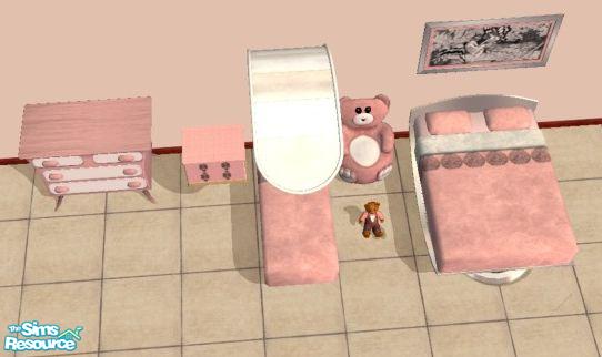 Part one of the Celtic Pink bedroom/nursery set. celtic pink bear chair, celtic pink bedding/white bed frame(slim system), celtic pink dresser(groovy dresser), celtic pink space painting (poisonous forest), celtic pink teddy bear & celtic pink toy box.