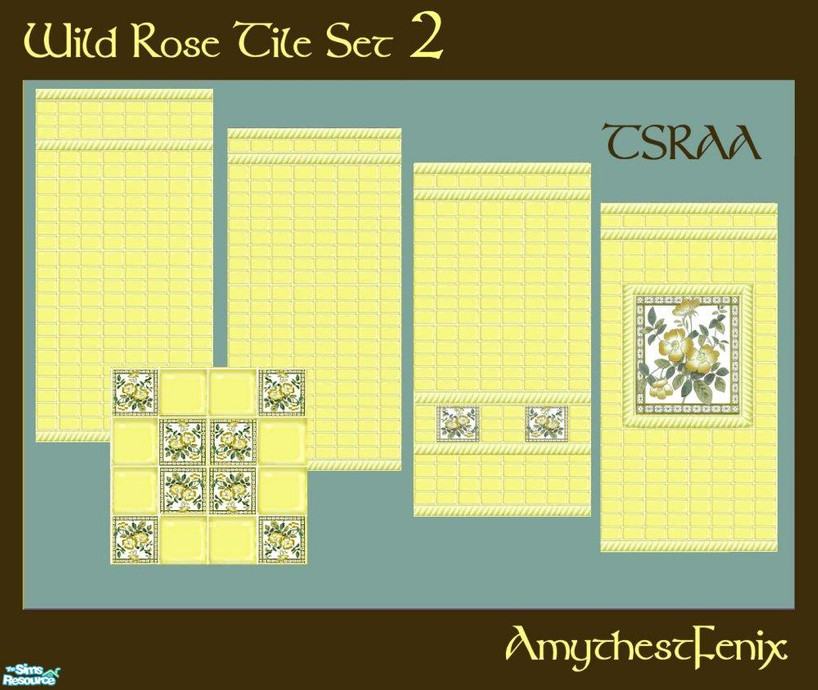 A second inexpensive tile set to bring more variety to your sim kitchens and baths as requested by wencke103. This set also features yellow tile with vintage wild rose tiles for accent.