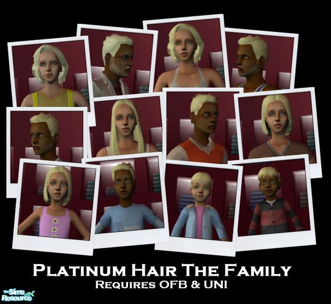 Recolored Maxis hair, includes hair for all ages and stubble for men.