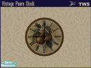 Five elegant wall clocks depicting vintage fruit artwork. Features large Roman numeral numbers and spade-shaped hands with matching wood frames.
