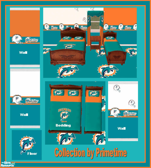This collection is for all Miami Dolphin fans. It is a complete bedroom set. It is shown with the BitzyBus curtain mesh which picks up all in game bedding. You can find that right here at TSR. All 32 teams coming soon.