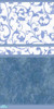 Pastel blue vines grace the upper half with durable blue wainscotting on the bottom half of wall.