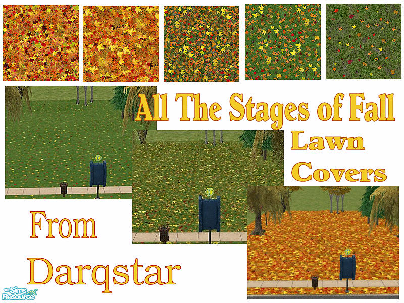 Now your Sims can truly enjoy the various stages of fall with this collection of groundcovers. Comes in both lush and spotty lawn version. (Final groundcover works for either, because it's so leafy you can't see anything under it anyway!)