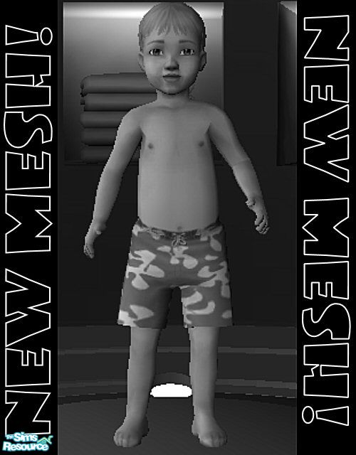 I've been pondering over the making of this mesh for some time now. I've just converted the mesh of a male swim shorts outfit, and made it for toddler boys AND girls. Recolor as you wish.