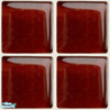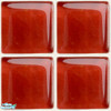 Red glass tile with white grout gives a cheery look to kitchen or bath.