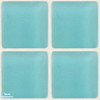 Aquamarine glass tile with white grout gives a cheery look to kitcen or bath.