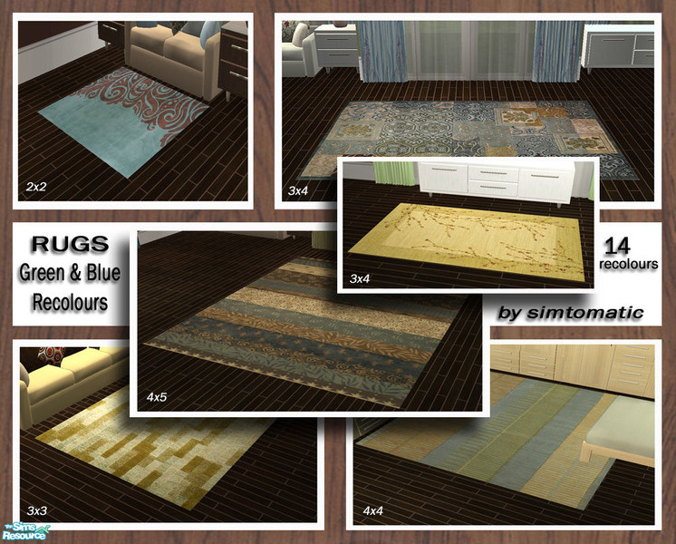 If you haven't already done so then you'll need to re-download the fixed rug meshes for these recolours to work.