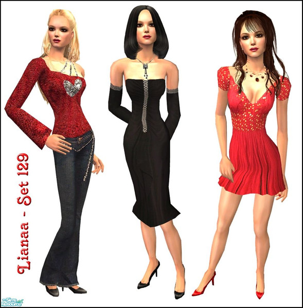 Sims 2 — Set 129 Valentine by Lianaa — A valentine set containing a red mini dress, an elegant black dress and a heart