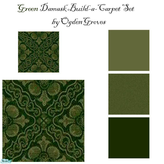 This is the Green Damask Build-a-Carpet Set. You can use this set to create custom designer floors that will coordinate with the Victorian Damask Wallpaper Set. Mix and match the wall colors with this cool carpet set to make your floors exactly what you want.