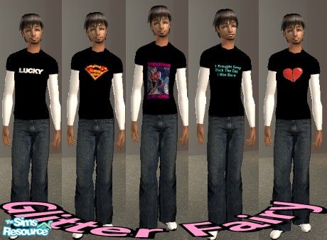Here is a set of graphic t-shirts for your sims. The shirts are black and they have long white shirts under them.