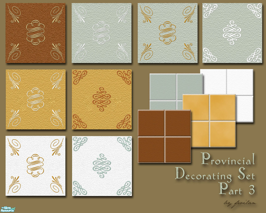 This is the 3rd part of the Provincial Decorating Set. Carpets and tiles to complement and coordinate with the walls and drapes and rug. These are classic, timeless patterns for any discriminating sim. Thank you for not redistributing beyond TSR without permission.