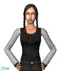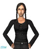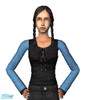 A set of ten laced, crushed velvet shirts, each with a black bodice and coloured sleeves.