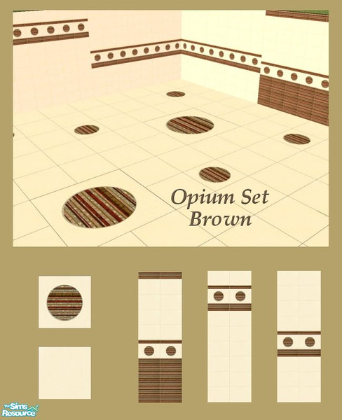 Unique set of tiles for bathroom or kitchen. Set includes three walls, two 1x1 floors and one 2x2 floor. Comes also in green.