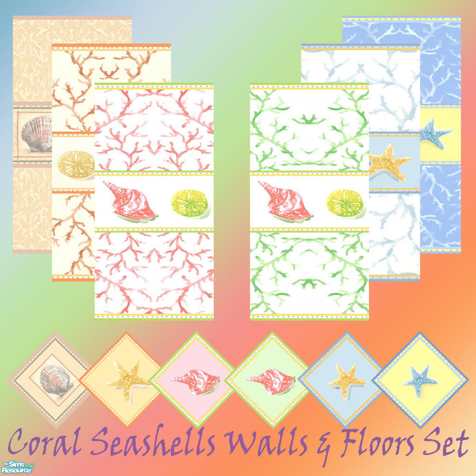 This set includes 12 items : 6 walls and their 6 matching floors. The walls type is "Paint" and the floors type is "Tile". The sound type of the floor is "Marble" and floors are 2X2 tile repeat. Each item cost 12. Hope you'll like the set. Enjoy.