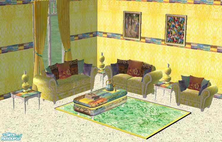Living room done in a rainbow batik pattern, matches my Rainbow Batik Bath and Kitchen Sets. By Riverwillows