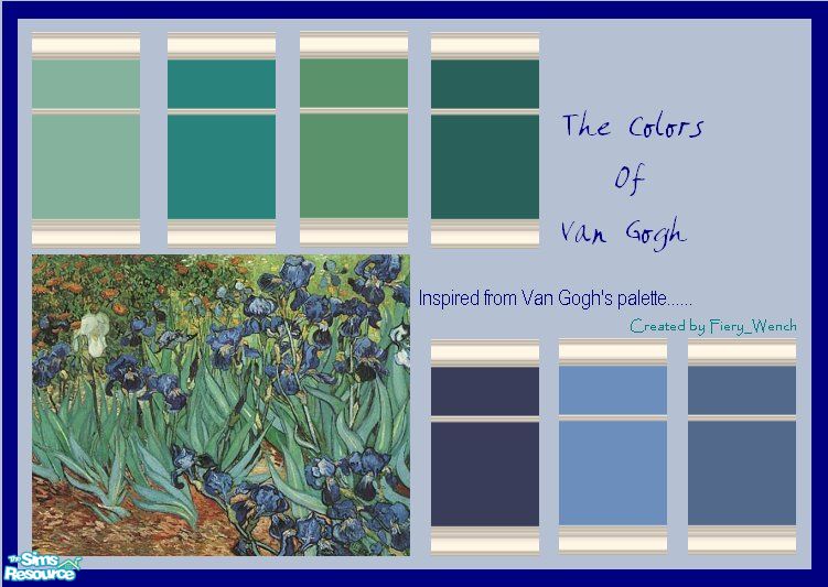 A set of 7 walls, each taken directly from a print of Van Gogh's "Irises".