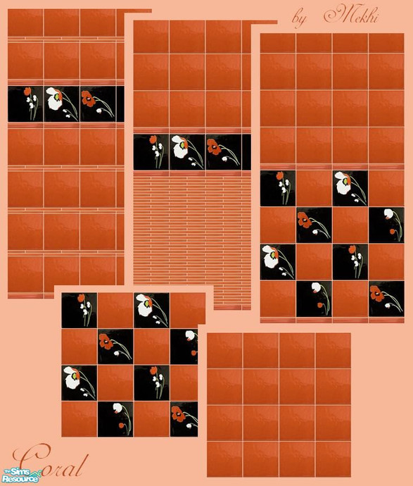Three tiled walls and two matching floors for your sims' homes. Enjoy!