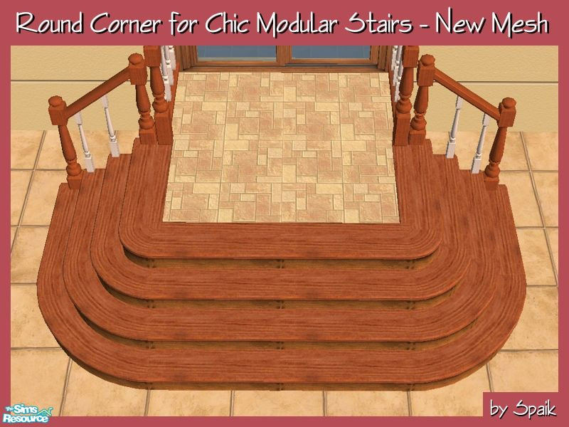 Decorative corner to make your modular stairs more stylish. This is the mesh file and matches Maxis Chic Stairs. Can be found under Decorative/Misc. Low poly, base game compliant.