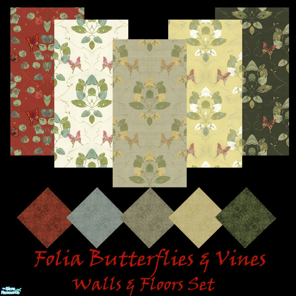 This set includes 10 items : 5 walls and their 5 matching floors. The walls type is \"Wallpaper\" and the floors type is \"Carpet\". The sound of the floor is also \"Carpet\". Each item cost 30. Hope you\'ll like the set. Enjoy.