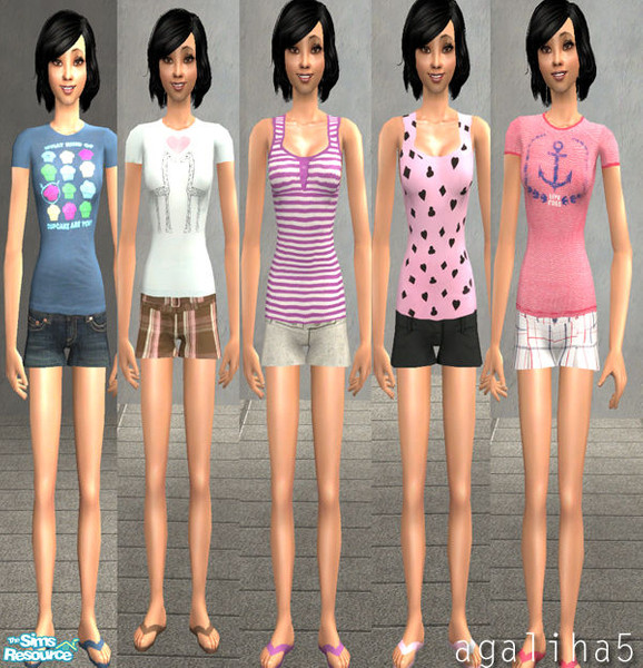 A fun set of shorts with matching tops that are perfect for your teens beach vacation. This set requires slice\'s flared short mesh. You must download the mesh for these recolors to work!