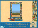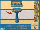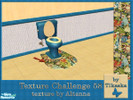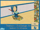 This blue and yellow bathroom with bright floral accents was designed for Texture Challenge 58. Recolors of the \"Simplicity Bathroom\" meshes. Set includes: Toilet, bathtub, sink, mirror, toiletshelf and bathshelf with towels and deco, wall and floor.