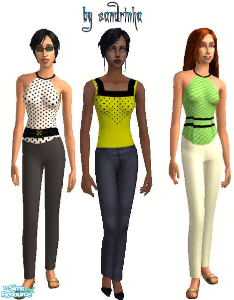 Three outfits for everyday wear. One of the models shows wonderful earrings by Liana Sims2. Enjoy!