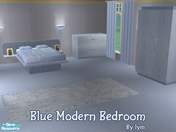 Sims 2 — Blue Modern Bedroom by lym — Includes: Bed plus bedding, armoire, dresser, rug, curtains (4 sizes) carpet and