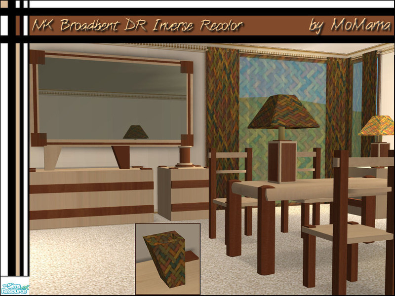 An inverse recolor of the Broadbent Dining Room reversing the Pearwood and Swiss Pearwood. Some items can be combined with original color to make solid color such as chairs and end tables.