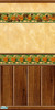 Tiled wall with oranges and wood.