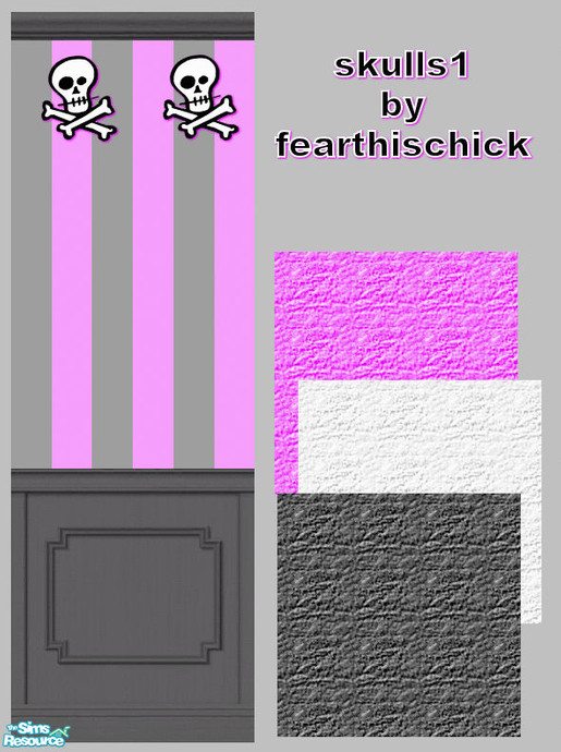 Sims 2 — Skulls 1 by fearthischick — This is my first creation and submission! Pink and black stripes with white skulls