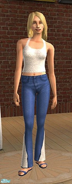 Cute halter top and flared jeans with matching inserts. For adult and elder. Maxis based, no EP\'s needed. By Riverwillows.