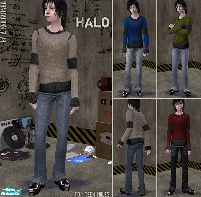 Set of four sweaters with bootcut jeans for Teen Males. Base game compatible.