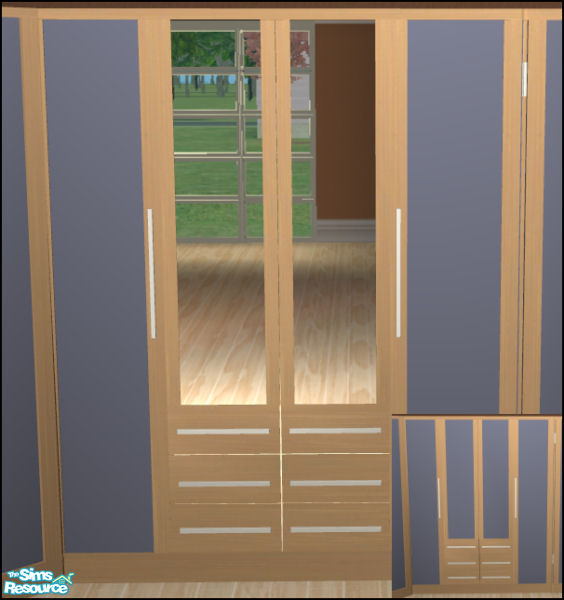 This wardrobe can be used with normal door panels or you can turn the doors into mirror panels by placing the mirror panels over the doors. You need to use the cheat moveobjects on to place the mirror.