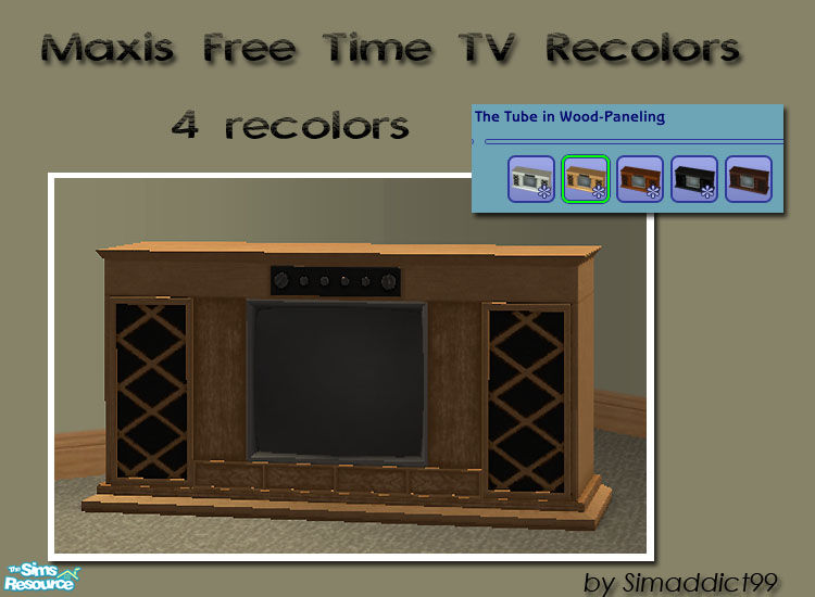 I love the new FT floor based TV, but did not like that Maxis only gave us one, dark brown finish . Thanks to Numenors FT CEP update here is a set of 4 recolors; pine, oak, white and black