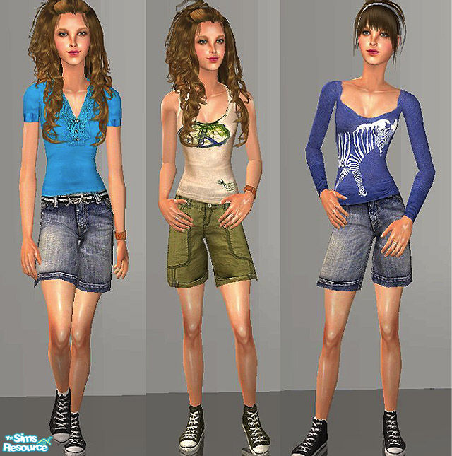 a set of three loose bermuda shorts , tees and sneakers for the teen female and a new mesh