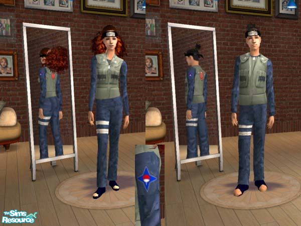 The basic outfit of an officer in the Konoha Military Police Corps resembles the ninja outfit on a normal Konoha Leaf Village Chuunin or Jounin. However, instead of bearing the swirl on the upper arms, it bears the patch of the Corps, the Uchiha Clan Symbol.
