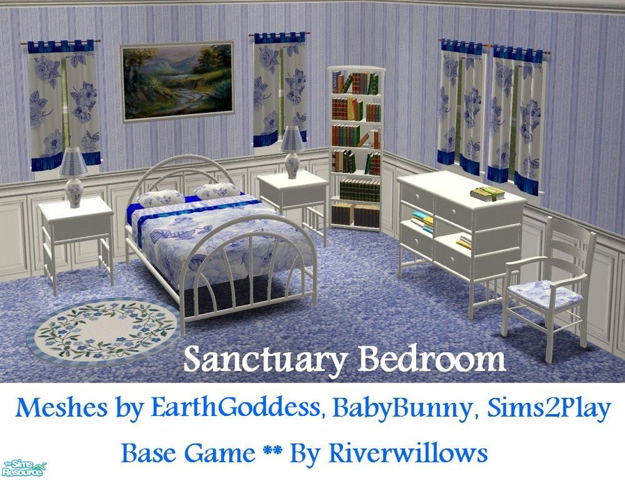 Sims 2 — Sanctuary Bedroom by Riverwillows — Relaxing bedroom done is soft blues and florals. Meshes by Sims2Play,