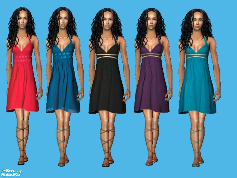 Sims 2 — Female Dresses by janicap — Set contains 5 female dresses based on mesh by Aleeza.