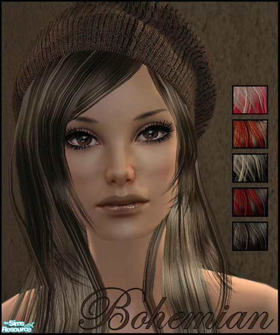 Sims 2 — BOHEMIAN by KalmanKukka — Package include six recolours. Original mesh (XMS_Flora_MeshHair094) is from XM Sims.