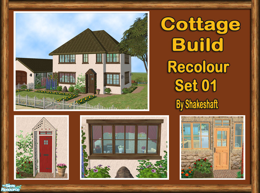 The first recolour set of the Cottage Build set, included are recolours of the Windows and Doors in several textures including Old Wood, Dark Wood, Pine, Red, Green, Blue and Stone textures in White, Cement, Gravel, Black.
