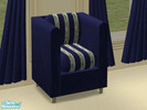 Lovely living set in blues, silver, and gold. Meshes by EarthGoddess of Natural Sims, and Crissie0721 of TSR. Base game. By Riverwillows.