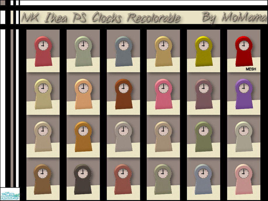 Someone asked for recolors of this clock. But it is not recolorable. So I asked Anoeska to look at it for me and she made me a recolorable mesh. I also included her lime green recolor.