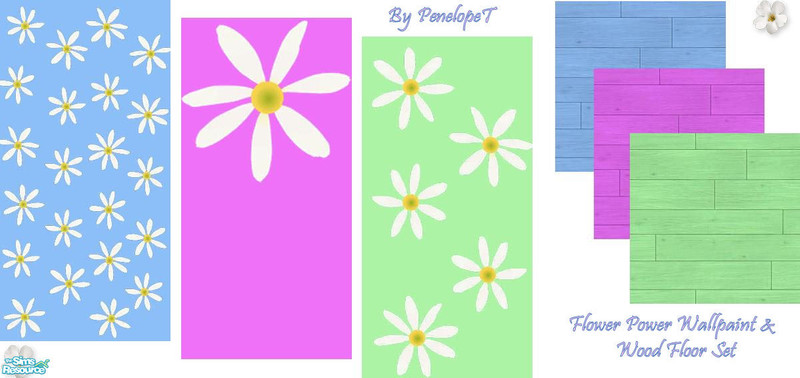 A set of colorful flower wallpaints and wood flooring. Enjoy!