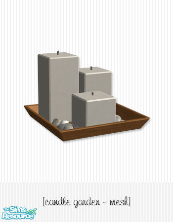 Mesh file with white candles, rocks and wood tray. Tray and candles are separate subsets.