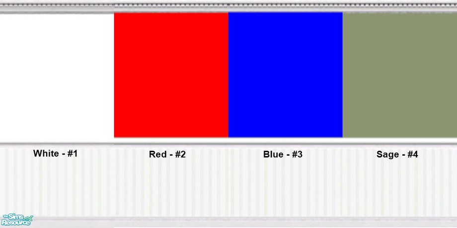 A small collection of beadboard wall panels. Each panel has a white beadboard base panel, toekick, chair rail and crown moulding with the upper panel area painted in either White, Red, Blue, or Sage Green.