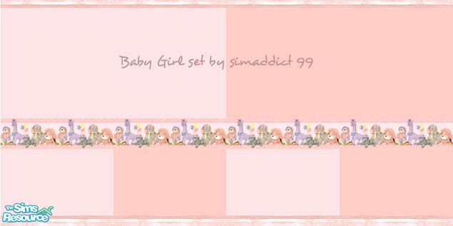 Sims 2 — Baby Girl Wallpaper Set by TSR Archive — Two tone pink wallpaper with pink-washed wood trim and an adorable