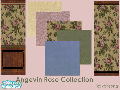 Sims 2 — Angevin Rose Collection by Ravensonng — Two walls in a dainty rose pattern with five matching carpets